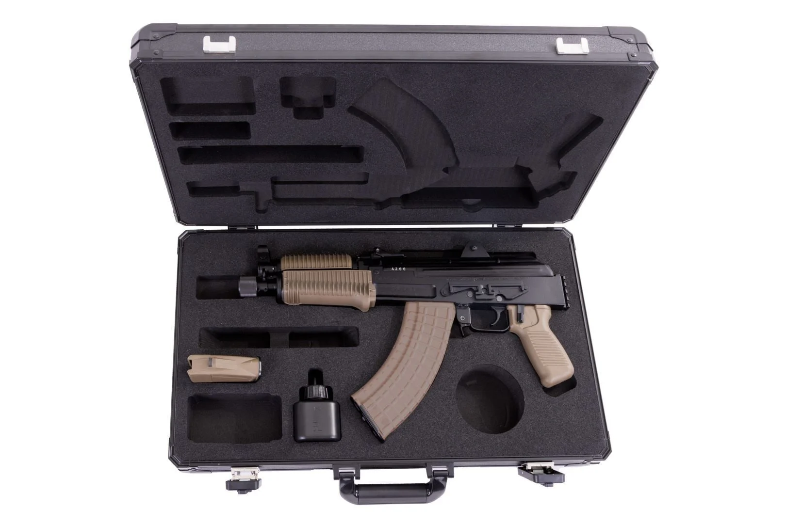 This package includes the standard 10rd magazine with an additional 30rd Circle 10 M-47W waffle magazine. It’s shipped in the Arsenal Custom Hard Case for SAM7K Series AK-47 Pistols. The case interior is lined with CNC machined hard foam custom designed to fit SAM7K series pistols with cut outs for magazines sling cleaning kit and oil bottle.Â