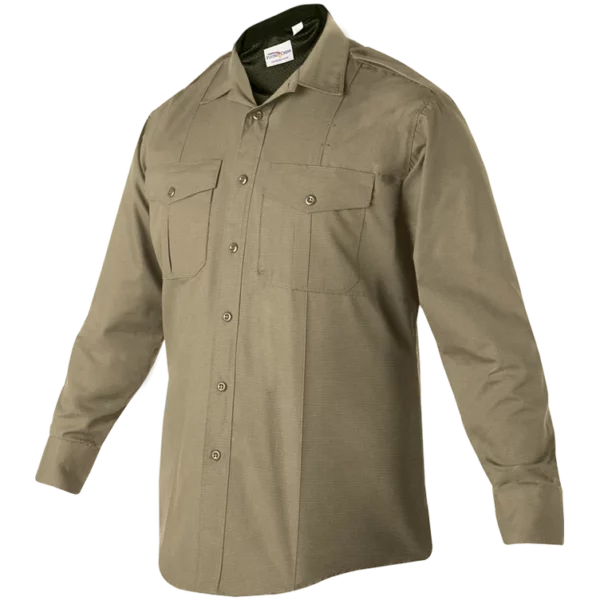 The Class B shirt brings the traditional professional look of a daily duty uniform with added comfort for lasting wear. This shirt takes stretch and comfort to a new level by regulating your body temperature while widening your range of motion. Shirt is made of 5.8oz 65/35 poly/cotton mini rip-stop stretch fabric for maximum mobility.
