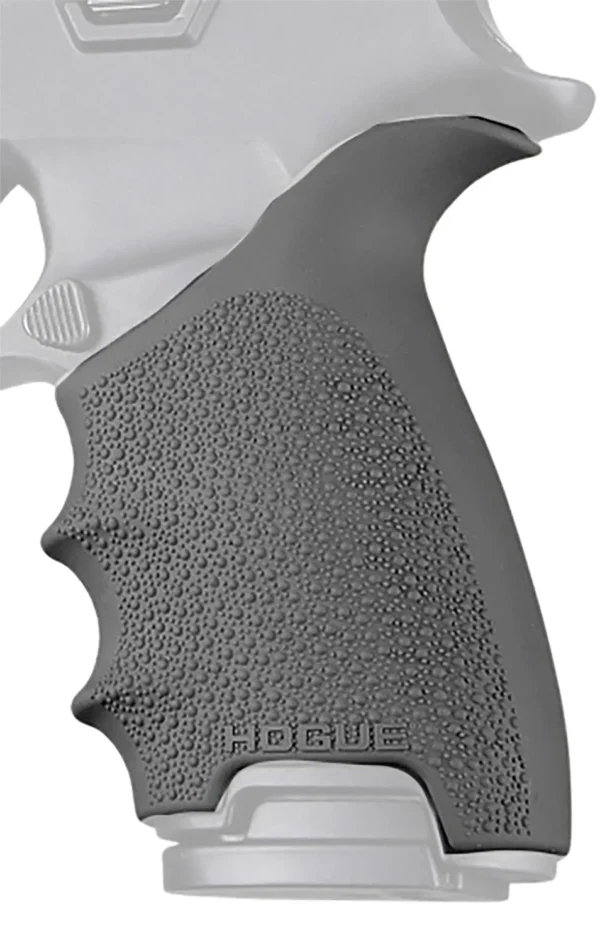 Gentle palm swells fit comfortably in hand. Finger grooves naturally position fingers for optimal grip. Textured with Cobblestone pattern for increased comfort and grip. Beavertail cushions the hand on recoil and offers increased hand comfort higher on the grip. Made from long lasting durable thermoplastic elastomer.