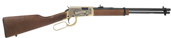 Rossi, MFG# RL22181WD-GBB, UPC: 754908900725, UOM: EA, Rio Bravo, .22 LR, Buffalo Bill, 18″ Barrel, Adjustable Sights, Gold Engraved Receiver, Hardwood, 15-rd, BRAZ, BRAZLG12, BRAZLGALL, LG12, LGALL